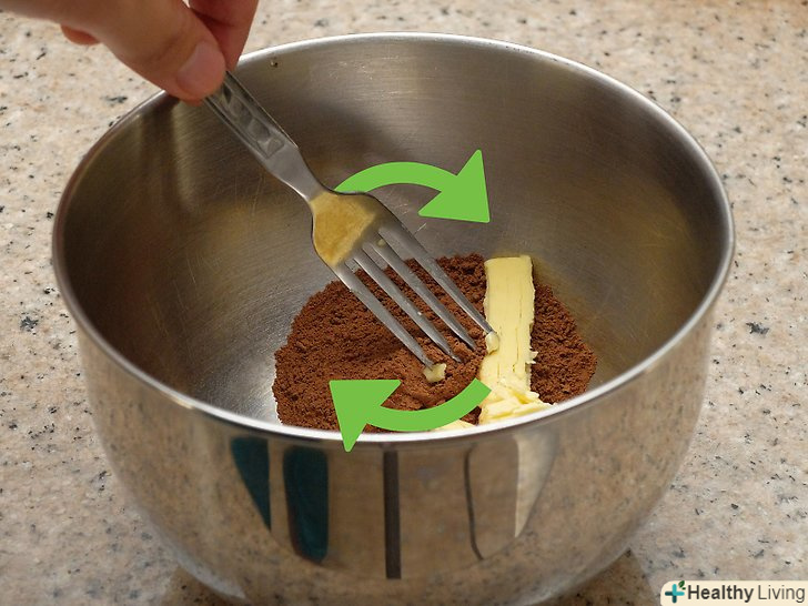 Змішайте какао порошок в мисці з розм'якшеним маслом.повинна вийти однорідна паста. За допомогою вилки, кухонного комбайна або блендера видаліть грудочки.