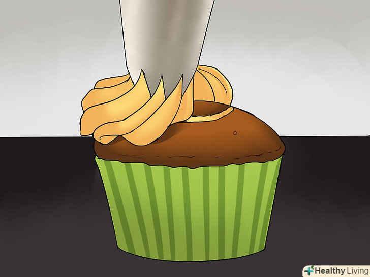 Видавіть начинку в кекс.залежно від його розміру можна видавити близько 1-2 столових ложок начинки. Зупиніться, як тільки начинка почне витікати з отвору; це означає, що ви наповнили кекс доверху.[4]