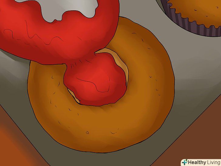 Наполовину заповнюйте отвір обраної начинкою.наповніть целофановий пакет або кондитерський мішок обраної начинкою. Відріжте кінчик і видавіть начинку в отвір. Вставляти в мішок кондитерську насадку при цьому немає необхідності.[10]вершковий крем, заварний крем або збиті вершки чудово підійдуть в якості начинки. Для різноманітності можна також використовувати повидло або лимонну помадку.- Не заповнюйте отвір більше ніж наполовину, інакше начинка просочиться назовні на наступному етапі приготування.