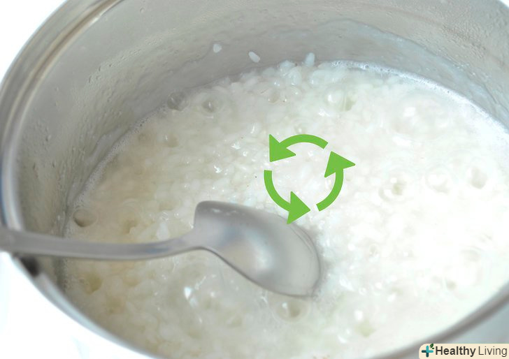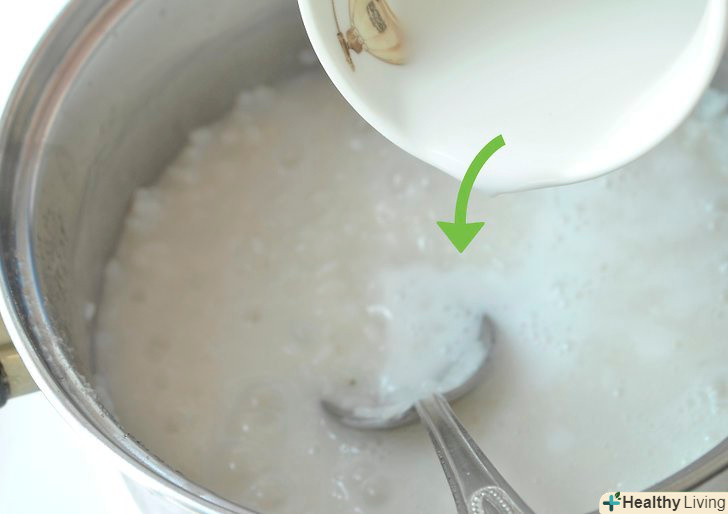 Додайте кокосове молоко.влийте трохи кокосового молока, коли рис вбере в себе всю воду.