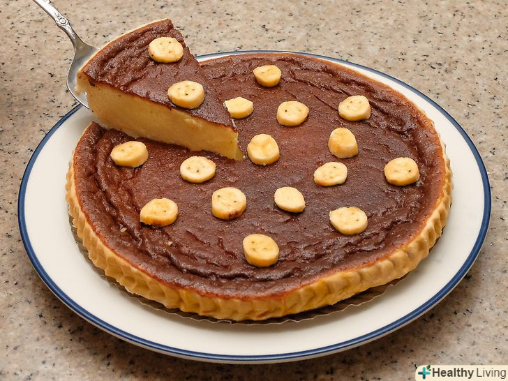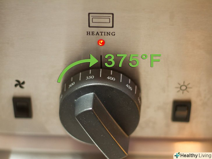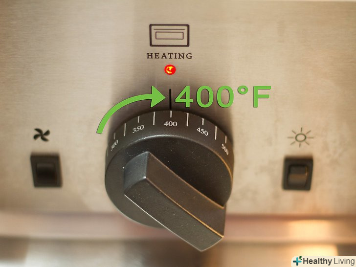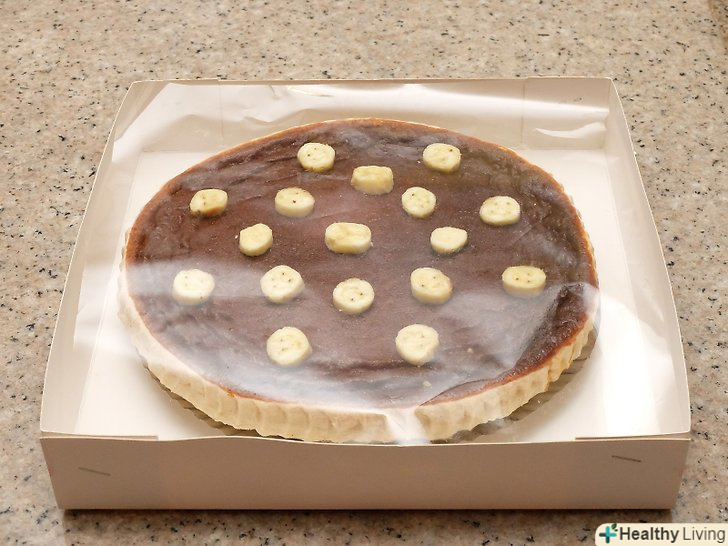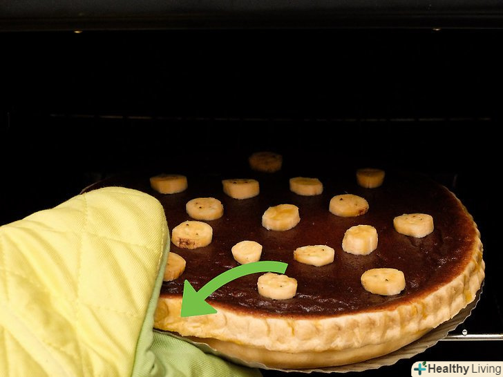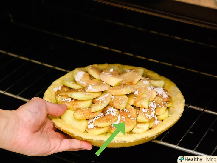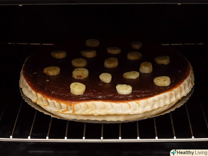 Помістіть пиріг в попередньо розігріту духовку.Розігрійте духовку до 200 °C або до тієї температури, яка вказана на упаковці. Покладіть пиріг на вистелений фольгою деко (якщо з пирога витече начинка, вона залишиться на фользі). Розмістіть деко з пирогом в духовці відповідно до вказівок на упаковці. Якщо таких вказівок немає, поставте деко на саму нижню полицю, щоб пиріг як слід запікся знизу.- Щоб пиріг добре пропікся знизу, розмістіть його внизу духовки і / або покладіть на попередньо розігрітий деко. Можна також накрити пиріг фольгою, щоб він не підгорів зверху.[10]