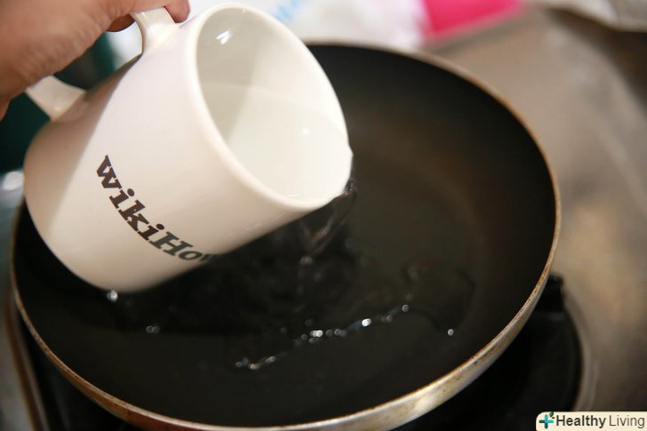 Заповніть велику каструлю водою і обережно нагрівайте її приблизно до 35 ° - 40 ° C. Після, як вода досягне приблизно 40 ° C, зніміть каструлю з джерела тепла. Вода буде продовжувати нагріватися, навіть після того, як її знімуть з джерела тепла.