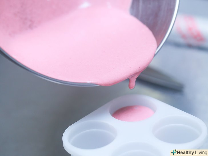 Перелийте отриману суміш у форми.[14] необхідно практично повністю заповнити кожну формочку, але не переливайте, щоб під час замерзання фігурки не склеїлися між собою. Трохи додаткового простору дозволить рідини розширитися.- Якщо під рукою немає формочки, її можна легко зробити самостійно. Просто влийте суміш в паперовий або пластиковий стакан.