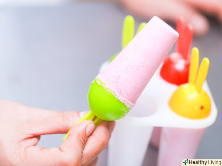 Дістаньте форми з морозильної камери, як тільки сік повністю замерзне.при спробі провернути ручку вона повинна щільно триматися всередині десерту і взагалі не ворушитися. Слід опустити нижню частину форми в теплу воду, щоб через деякий час легко дістати сік.[16]- Якщо в якості форми ви використовуєте паперовий стакан, спробуйте просто зірвати з льоду папір.