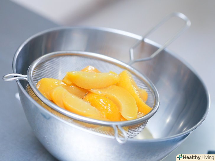 Очистіть шкірку персиків за допомогою ножа.якщо у вас немає свіжих персиків, використовуйте вже нарізані і очищені консервовані. Просто злийте рідину з банки.