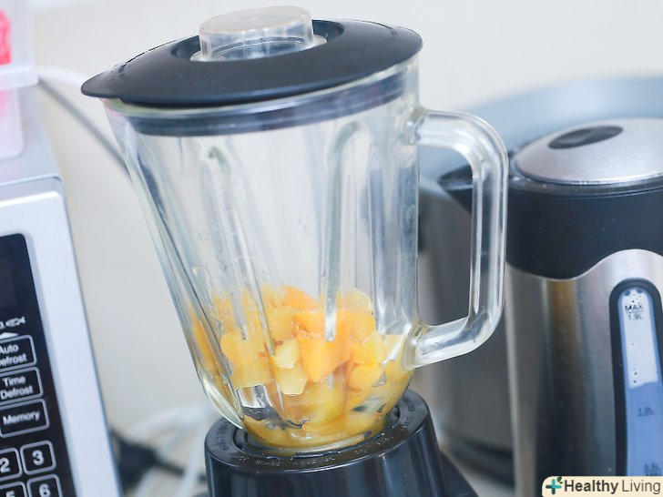 Необхідно подрібнити очищену полуницю в блендері. [18] якщо під рукою немає свіжої полуниці, використовуйте заморожену. Її смак не такий же насичений і соковитий, але прісним він теж не буде!- Вимийте блендер, так як він ще знадобиться вам для персиків і ківі.