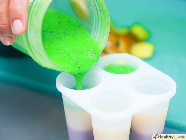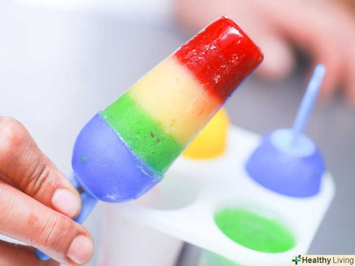 Готовий заморожений сік складається з трьох однакових шарів рожевого, жовтого і зеленого кольорів, як справжній світлофор!як тільки ви освоїте цей рецепт, починайте експериментувати з іншими смаками. Намагайтеся використовувати сезонні фрукти, адже вони дуже стиглі і гармонійно поєднуються між собою.[31]- Навесні і влітку пускайте в хід ожину, чорницю, малину, полуницю, бойзенову ягоду, виноград, диню, нектарини, сливи, персики і плумкоти.[32]