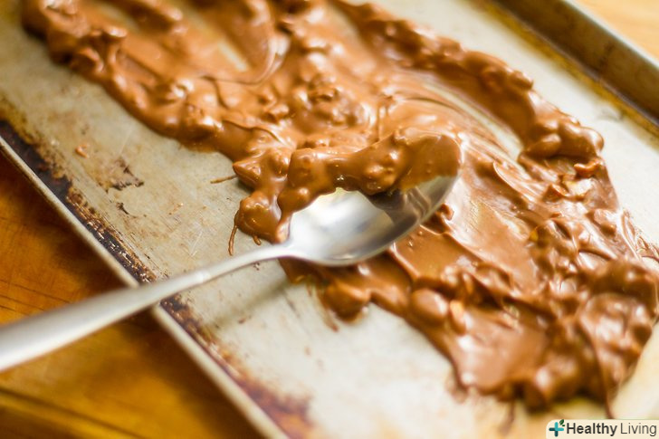 Поставте шоколад на 30 секунд.коли час минув, дістаньте миску (будьте обережні, вона може виявитися гарячою), перемішайте шоколад і знову покладіть миску в мікрохвильовку. Продовжуйте гріти шоколад по кроках в 15 секунд, виймаючи миску і перемішуючи кожен раз. Причина, по якій потрібно його гріти по таким коротким крокам, полягає в тому, що мигдальний шоколад легко підгорає.[3]