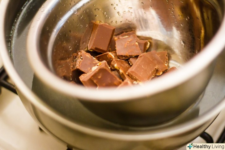 Покладіть молочний шоколад на верхню частину пароварки.пароварка зроблена з двох складових-великої каструлі з водою та іншої, меншої каструлі, встановленої нагорі. Пароварки гарантують, що ваш шоколад не підгорить в процесі розтоплення, так як ви нагріваєте його побічно за рахунок використання обох каструль.[2]