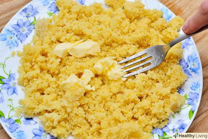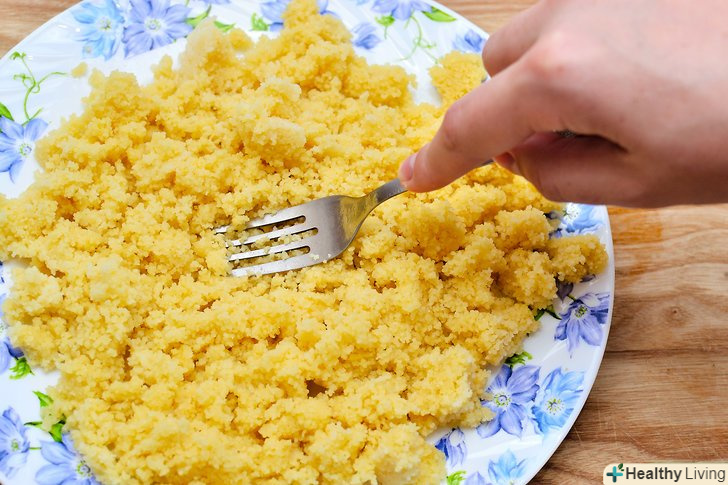 Через 15 хвилин зніміть харчову плівку і збийте кускус виделкою.