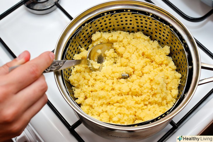 Приготуйте повітряний кускус простим способом.більшість упаковок кускусу містять рецепт приготування. Такі рецепти зазвичай містять рекомендації з приготування кускуса в пароварці. Однак цей спосіб не найкращий, хоча і прийнятний. Спробуйте наступний [2] найпростіший спосіб приготування кускусу.