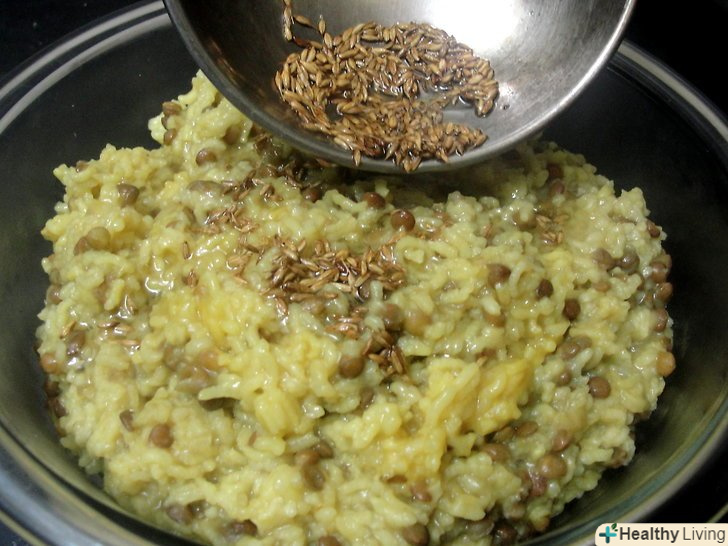 Приготуйте «тадку», додавши зіри (насіння кмину) до масла, і трошки підсмажте.