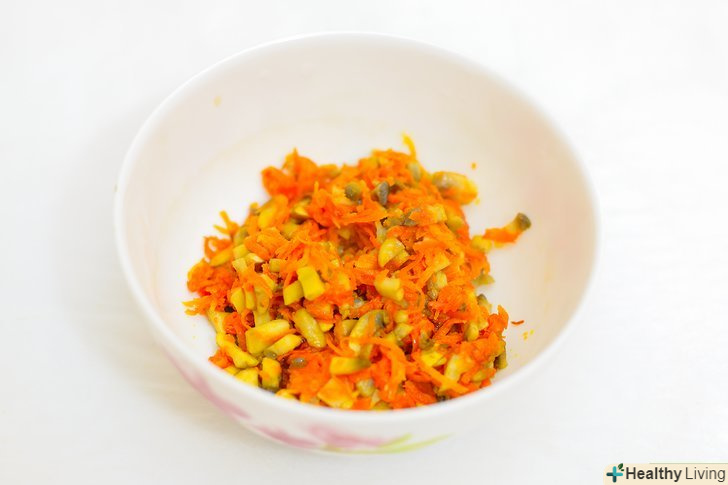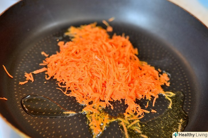 Додайте в масло 1/3 склянки тертої моркви.готуйте моркву протягом 2-3 хвилин, помішуючи, щоб вона просочилася маслом.
