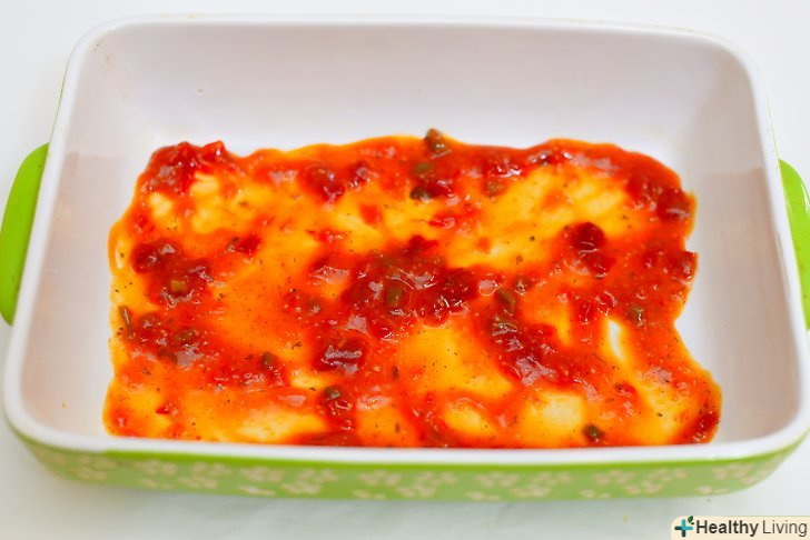 Змастіть форму для запікання 23 на 33 см 3 ст. л. томатного соусу.