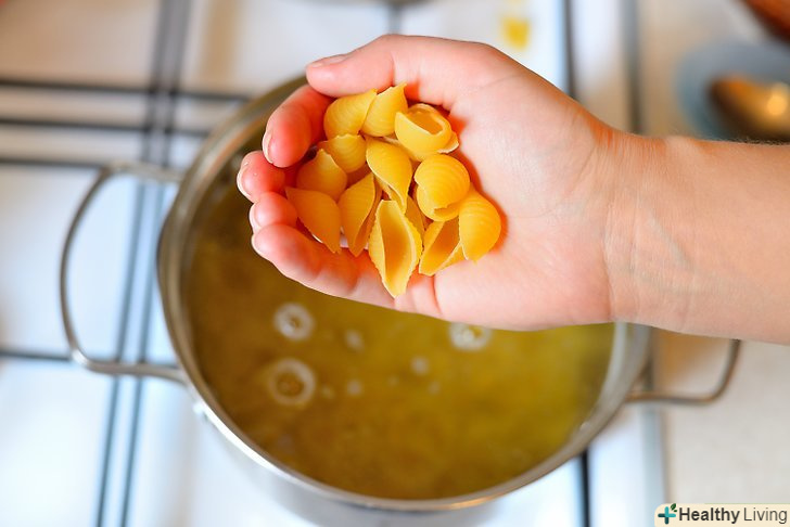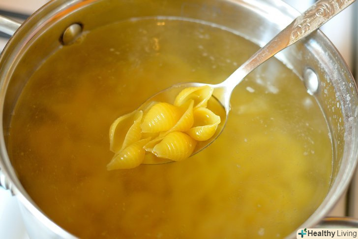 Покладіть у воду 1 упаковку (340 г) великих черепашок.готуйте протягом 8-10 хвилин до аль денте. Прочитайте інструкцію на упаковці, щоб дізнатися, скільки часу їх необхідно готувати. Злийте з готових черепашок воду.[3]