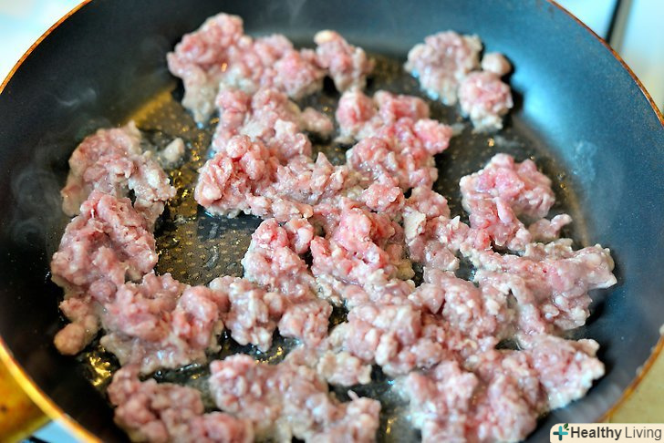 Покладіть 3 кг яловичого фаршу в сковороду на середньому вогні.