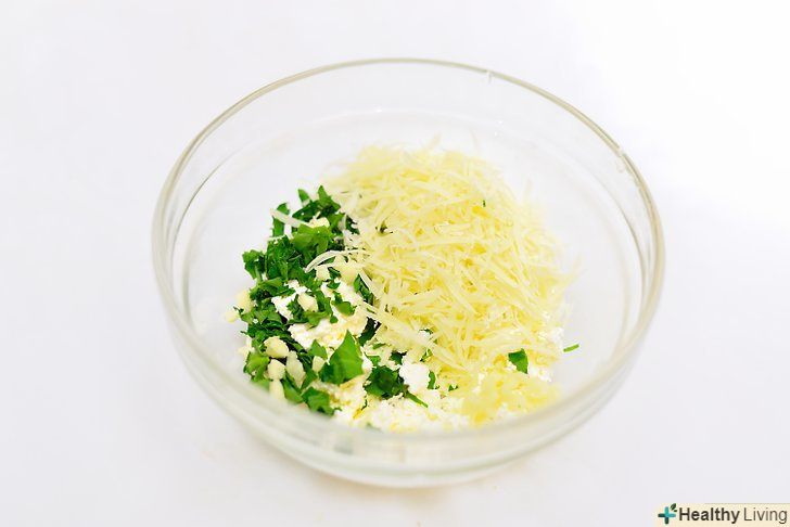 Зробіть начинку з сиру.покладіть у велику миску 3 склянки (710 гр.) сиру Рікотта, 1,5 склянки (360 гр.) сиру пармезан, ½ нарізаного кубиками цибулі-шалот, 2 ст.л. нарізаної петрушки, 4 нарізаних листа базиліка, ½ подрібненого зубчика часнику і вичавіть лимон. Посоліть і поперчіть за смаком і почніть змішувати інгредієнти.- Якщо начинка здається занадто сухою, додайте 1/4 склянки (60 мл) вершків і 1-2 ст.л. оливкової олії.