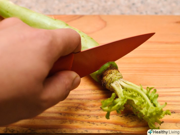 Видаліть з кореневища листя, відрізавши ножем.Необов'язково викидати листя-їх можна їсти і зробити додатковим інгредієнтом до салатів. Також можете висушити їх, щоб використовувати пізніше.