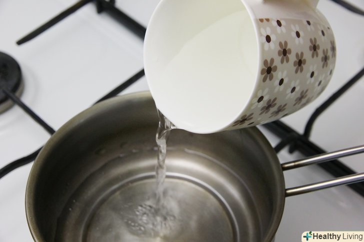 Налийте воду в каструлю.можна використовувати водопровідну або очищену воду. Налийте в каструлю приблизно 2-2 1/2 склянки води (500-600 мл). Доведіть воду до кипіння. Додайте одну чайну ложку солі.[3][4]- Слідкуйте за тим, щоб вода не википіла. Якщо ви використовуєте невисоку каструлю, зменшіть вогонь або якщо необхідно, відлийте трохи води з каструлі в раковину.