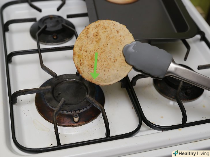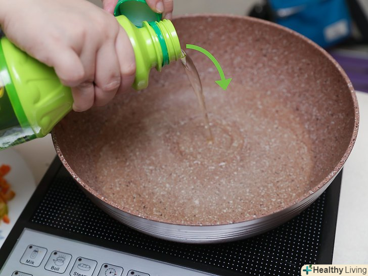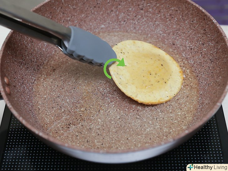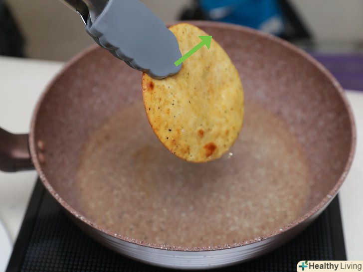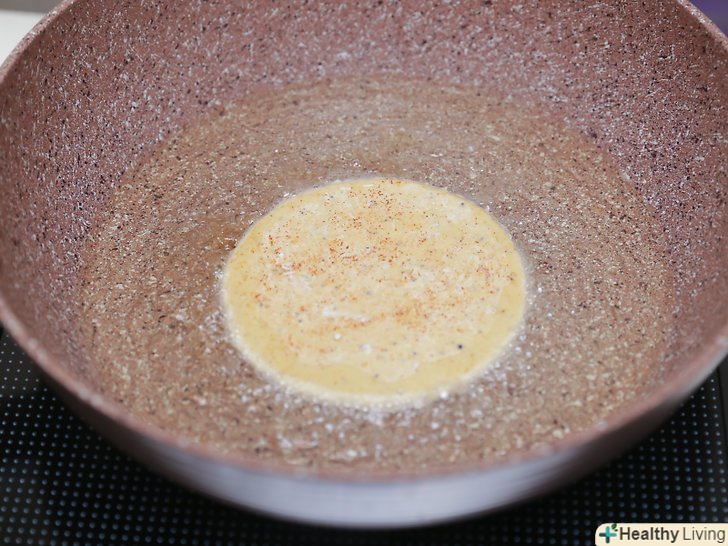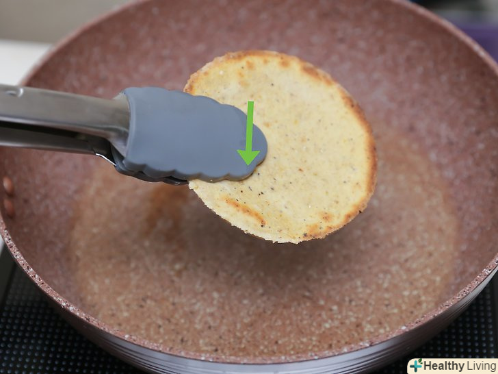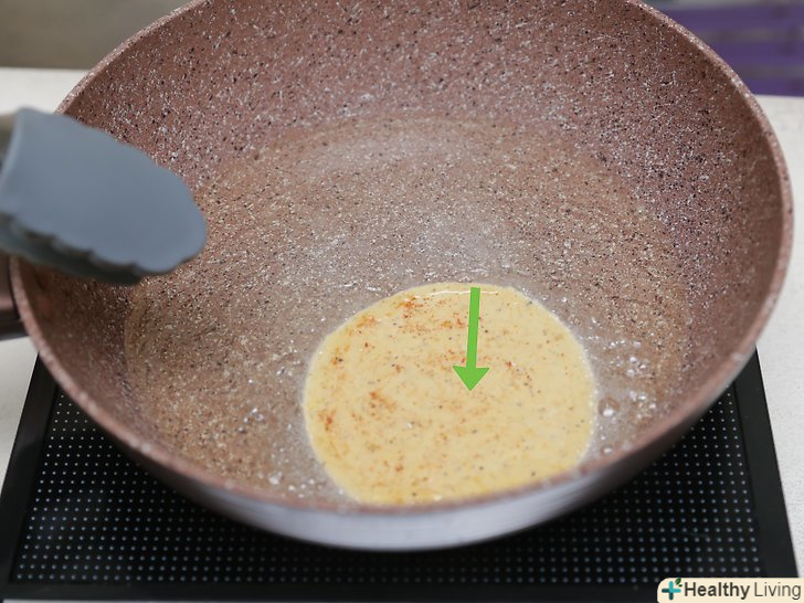 Розігрійте масло в сковороді на середньому вогні.Налийте 1/2 чайної ложки (2,5 мл) масла в сковороду і почекайте, поки не почнуть утворюватися бульбашки.- Якщо ви не хочете смажених пападамів, ви можете їсти їх, не вдаючись до процесу смаження. В цьому випадку ви можете тільки спекти тісто. У такому вигляді ви можете вживати пападами в їжу. Однак якщо ви хочете насолодитися смаком справжніх пападамів, не пропускайте цей крок.