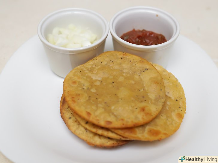 Подавайте.Подавайте це смачні ласощі як самостійне блюдо, так і в поєднанні з іншими стравами. Ви можете подавати це блюдо з хумусом, чатні, салатом з печеного баклажана Баба Гануж або вашим улюбленим блюдом індійської кухні.