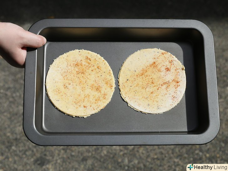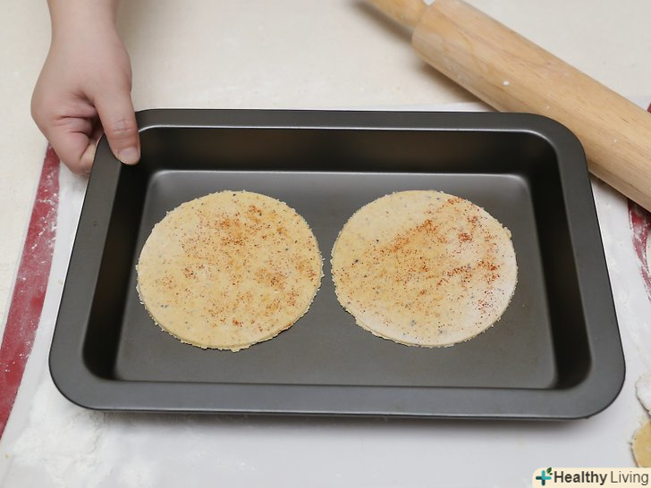 Помістіть тонкі кола тіста на 2 великих дека.коли ви розкачали тісто і вирізали з нього кола, вам необхідно помістити їх на деко. Застеліть деко фольгою. Ви навіть можете змастити її трохи маслом. Залиште достатньо місця між кожним колом тіста, щоб вони не злиплися між собою під час приготування.- Ви можете випікати кілька кіл тіста одночасно, якщо у вас є кілька листів. Якщо ж у вас тільки один деко, процес випікання займе більше часу.