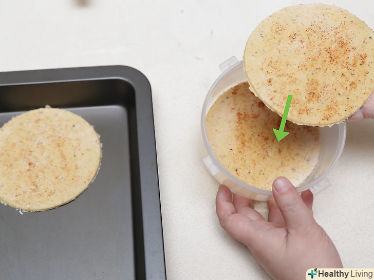 Помістіть кола тіста на деко.Візьміть тісто, яке ви приготували і викладіть його на деко. Переконайтеся, що кола тесту розташовані досить далеко один від одного і не торкаються один одного. Ви повинні будете використовувати, принаймні, 2 дека. Використовуйте мінімум два дека. [5]