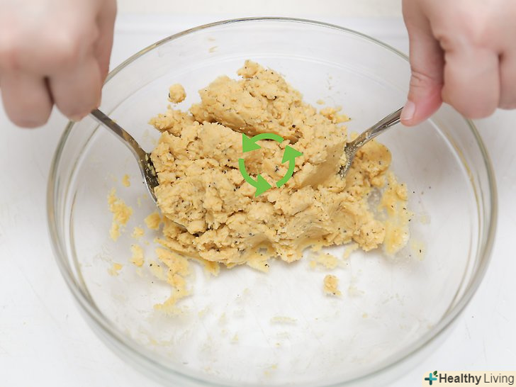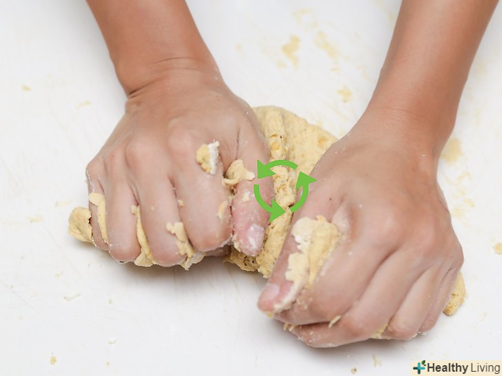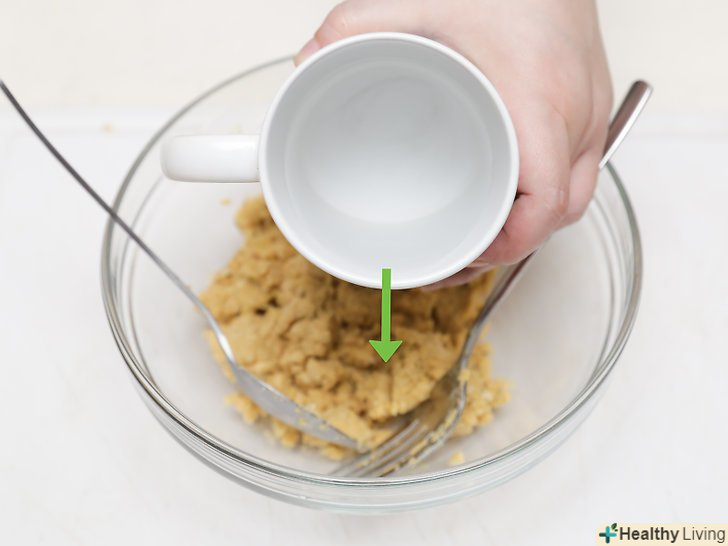 Вимісіть всі інгредієнти разом.у вас повинно вийти сухе тісто. Використовуйте дерев'яну ложку, щоб вимісити інгредієнти разом. Коли ваша суміш придбає форму тесту, ви можете продовжувати вимішувати її руками. Ви можете не використовувати дерев'яну ложку, а вимішувати тісто тільки руками.