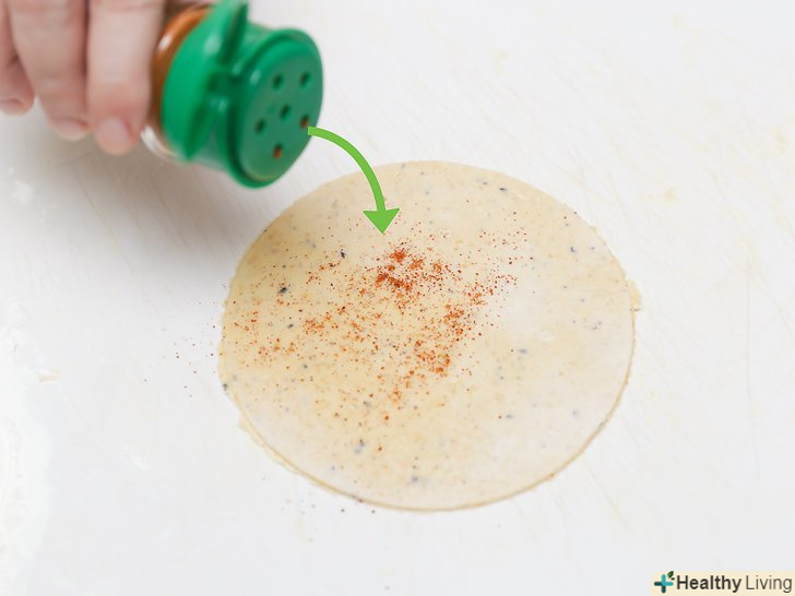 Посипте кожен тонкий круг кайенським перцем.це додасть пікантність вашій страві. Ви можете перевернути тісто на іншу сторону і посипати його перцем з іншого боку теж.