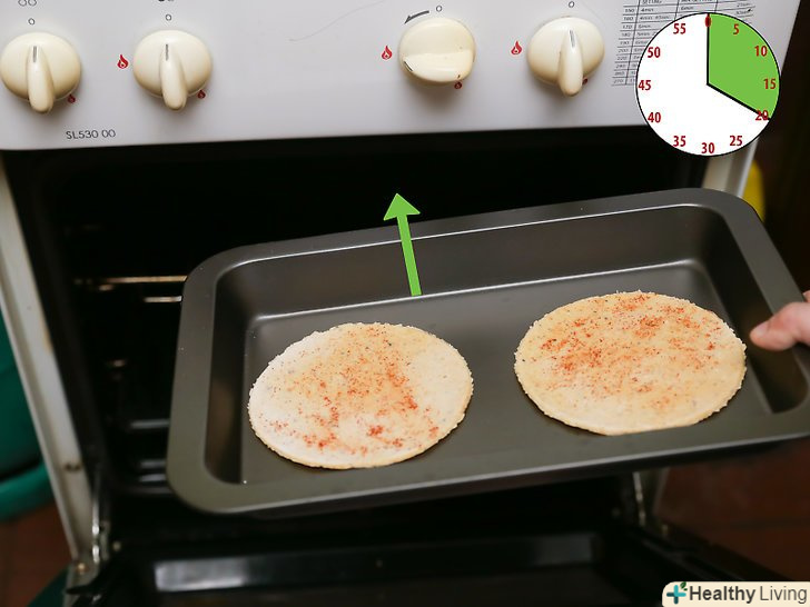 Випікайте тісто в духовці протягом 15 - 25 хвилин при температурі 150 ° C або до формування хрусткої і сухої вафлі.через десять хвилин почніть час від часу перевіряти тісто, щоб воно не підгоріло. Готову страву має бути твердим і сухим, але не настільки сухим, що воно почне кришитися при дотику до нього. [2]