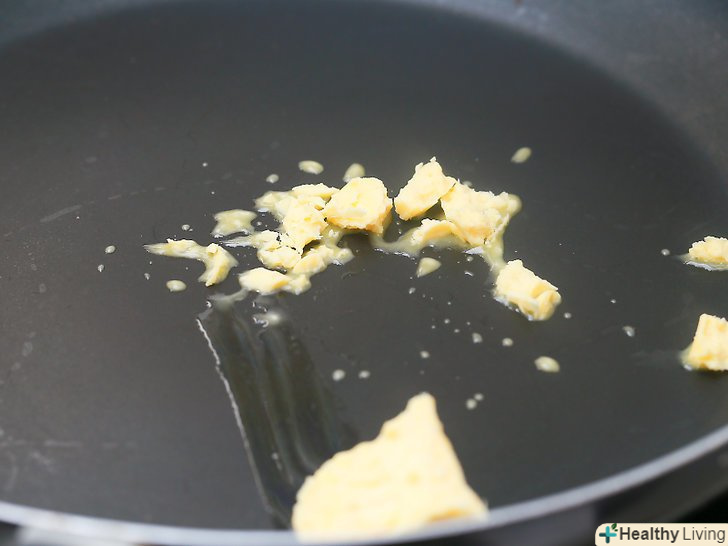 Розтопіть масло.[6] покладіть масло в маленьку каструлю і встановіть каструлю на плиті при середньо - низькій температурі. Нагрівайте повільно, поки воно повністю не розтопиться.- Важливо, щоб ви повільно розтоплювали масло, так як перегріте масло може бурхливо закипіти. Коли це відбувається, жир розщеплюється в нерівному темпі, і гаряче масло може окропити і викликати опіки.