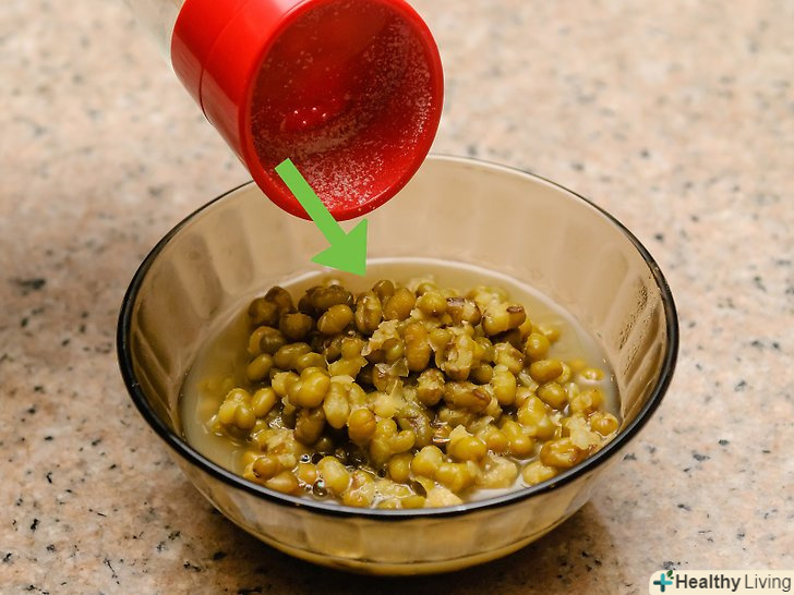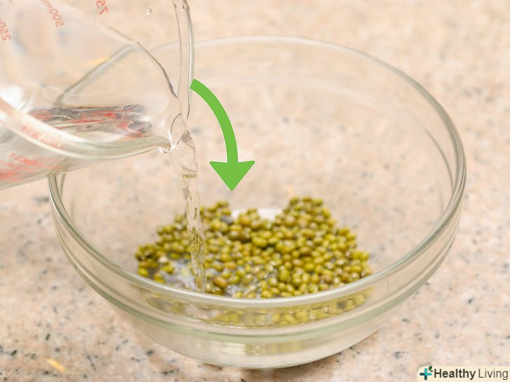 Розмочуйте маш протягом 24 годин.поставте миску в прохолодне темне місце як мінімум на добу.[14] боби вберуть воду і проростуть. Виберіть безпечне місце для зберігання, щоб випадково не розплескати вміст посуду. Для цієї мети чудово підійдуть:- Дальній кут кухонної шафи;