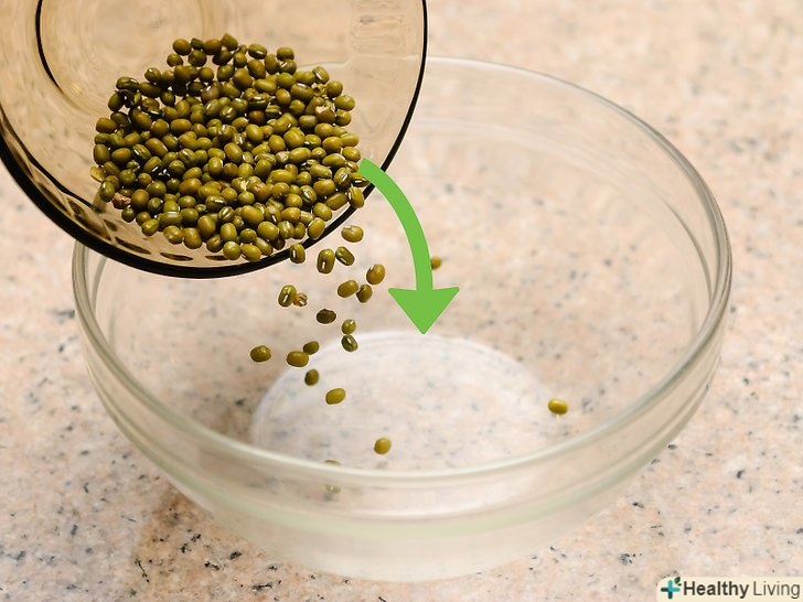 Переберіть боби мунг.повільно пересипте їх у велику миску. Акуратно перегляньте. Іноді в упаковках сухого маша трапляються дрібні камінчики або інше сміття.[1]- Необхідно також відсіяти будь-які підозрілі на вигляд боби. Старі зморщені плоди дуже важко розм'якшити. Під час їжі вони неприємно хрумтять на зубах.