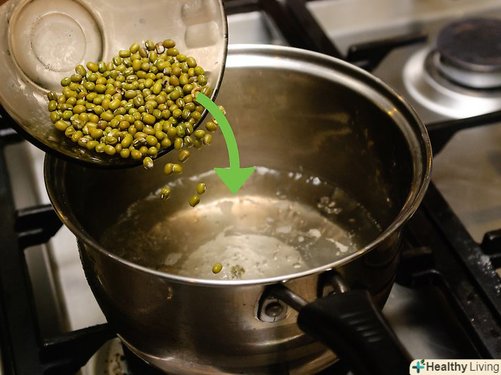 Закип'ятіть невелику кількість води.поставте велику каструлю на плиту і включіть сильний вогонь. Додайте приблизно 0,7 літра (3 склянки) свіжої води, і дайте їй закипіти.- Завжди готуйте боби в холодній воді з-під крана. Гаряча вода розчиняє відкладення на стінках труб, які згодом потрапляють в їжу.[2]