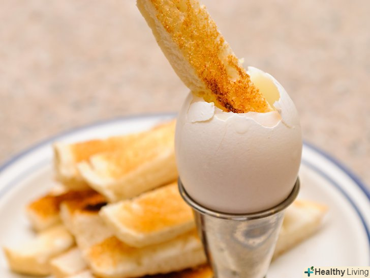 Постукайте горизонтальними рухами по верхівці кожного яйця чайною ложкою, щоб зняти третину яєчної шкаралупи.тепер яйця готові, щоб в них можна було вмочати тости. Трохи поперчіть і посоліть кожне яйце.[2]
