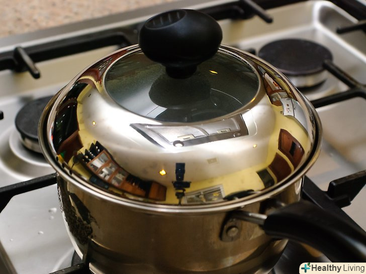 Дайте воді закипіти на слабкому вогні.як тільки вода закипить, накрийте каструлю кришкою і приберіть з гарячої конфорки.