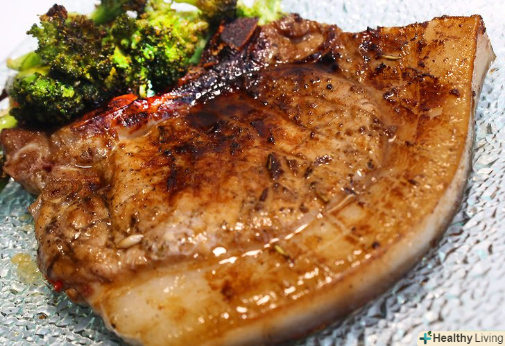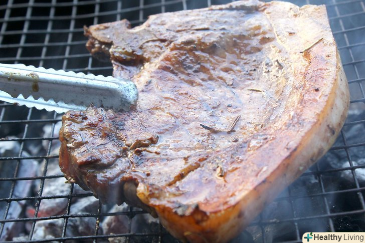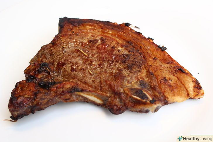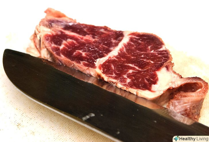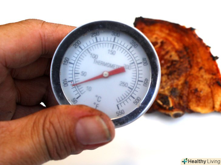 Розігрівайте червоне м'ясо до 65 °C. вимірюйте температуру стейків, відбивних або запікається м'яса до тих пір, поки вона не підніметься до потрібного рівня. Це відноситься до яловичини, свинини, баранини і телятини. Після того як м'ясо розігріється до необхідної температури, готуйте його ще 3 хвилини.[7]- Не їжте слабо просмажені стейки, якщо у вас ослаблена імунна система.