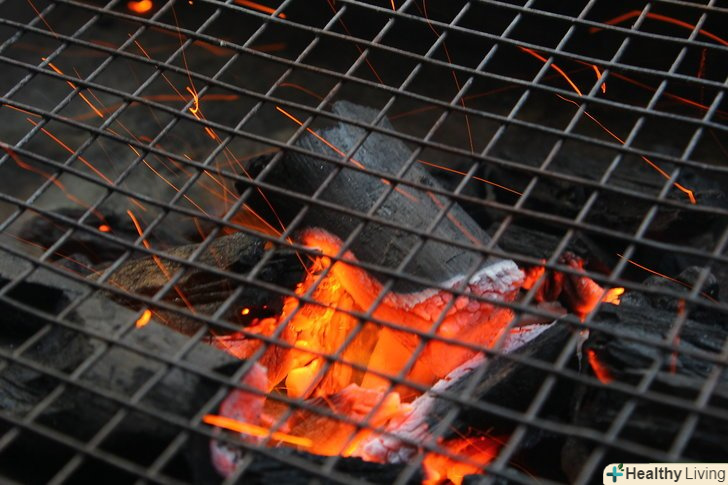 Покладіть м'ясо на решітку над полум'ям і накрийте гриль кришкою.рівномірно розкладіть м'ясо на решітці так, щоб воно знаходилося над вогнем. Після цього відразу ж накрийте гриль кришкою, щоб з нього не виходило тепло.[20]- Простежте, щоб з м'яса не капав маринад, інакше полум'я може спалахнути.