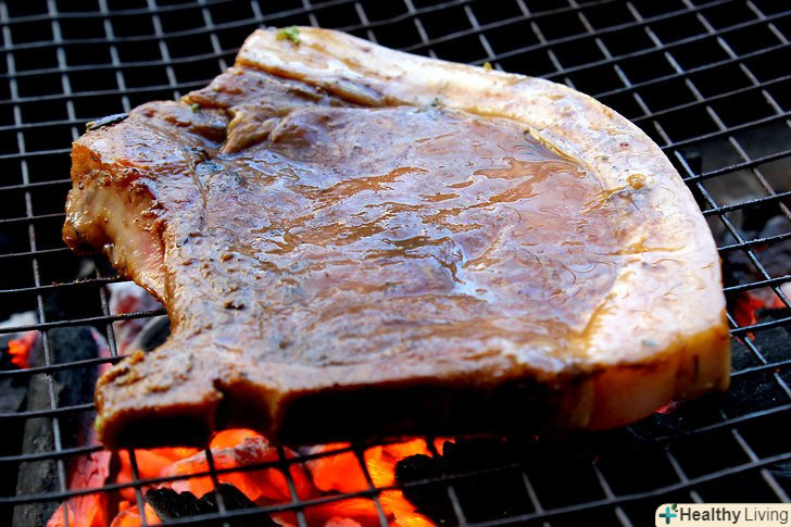 Смажте м'ясо до тих пір, поки воно не буде повністю готове.курячі грудки слід смажити близько 8 хвилин з кожного боку над прямим вогнем або 10-12 хвилин, якщо вони лежать не прямо над полум'ям.[22] якщо стейк тонше 4 сантиметрів, обсмажуйте його з кожного боку 5 хвилин, проте температуру більш товстих стейків перевіряйте за допомогою термометра для м'яса.[23] шматки свинини слід смажити на грилі 12-20 хвилин, щоб вони повністю приготувалися.[24]- Завжди перевіряйте температуру всередині м'яса, так як гриль може гріти по-різному.