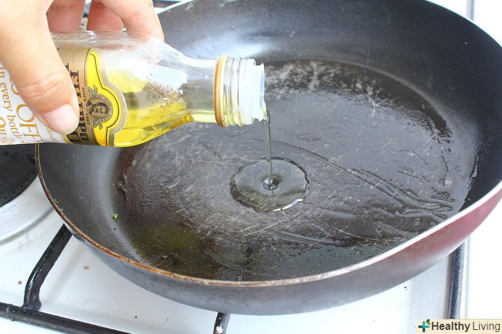 Розігрійте змащену маслом сковороду на плиті на середньому або сильному вогні.покрутіть сковородою, щоб все її дно покрилося рослинним маслом. Поставте сковороду на вогонь і почекайте, поки масло покриється брижами.[25]- На сковороді з антипригарним покриттям вийде менш хрустка скоринка. Краще взяти чавунну сковороду.