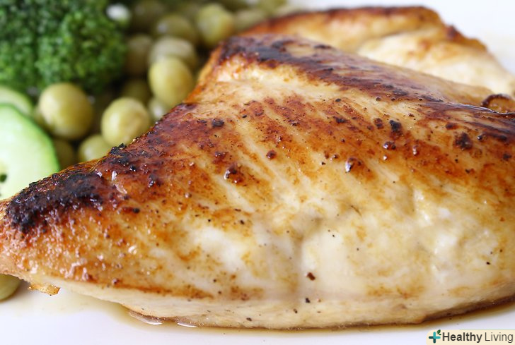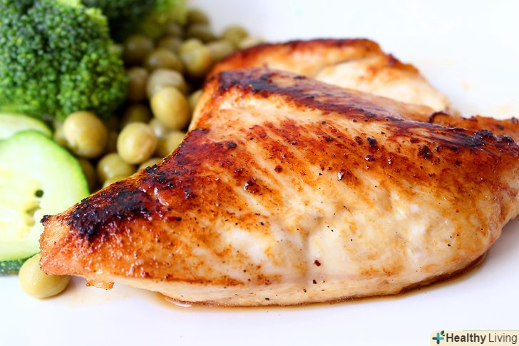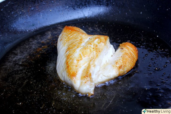 Повністю приготуйте м'ясо.час приготування залежить від розмірів м'яса і його виду. Куряча грудка вагою близько 150 грамів буде смажитися приблизно по 5 хвилин з кожного боку до повної готовності.[28] яловичий стейк або свиняча вирізка товщиною 2-3 сантиметри буде готуватися 3-4 хвилини з кожного боку.[29]- Якщо м'ясо сильно розігрілося і ви боїтеся, що воно підгорить, дістаньте його і покладіть на деко. Поставте деко в духовку і готуйте м'ясо в режимі смаження протягом 2-3 хвилин, потім знову перевірте його температуру.