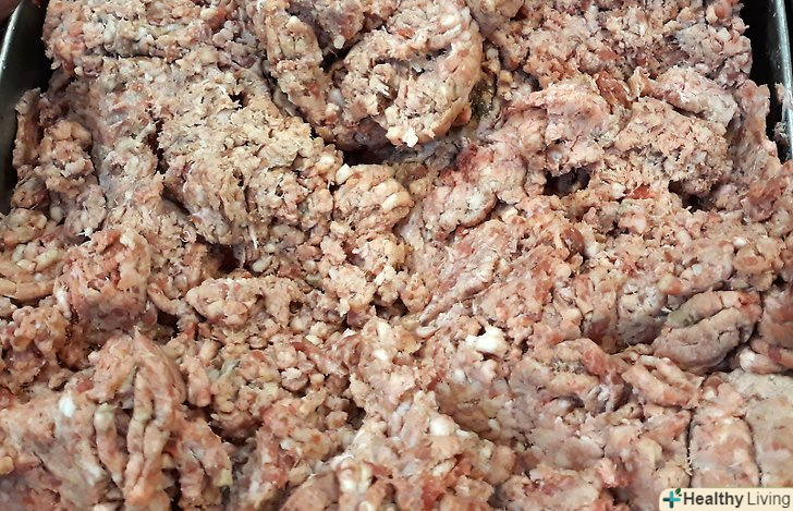 Простежте, щоб фарш з червоного м'яса нагрівся вище 70 °C. розділіть великі шматки фаршу, щоб він швидше приготувався. При цьому фарш повинен прожаритися і потемніти по всьому об'єму, щоб бути готовим до вживання.[8]