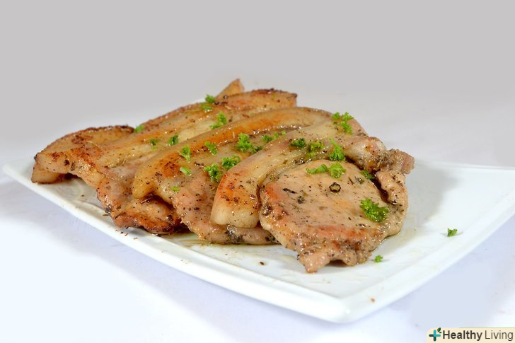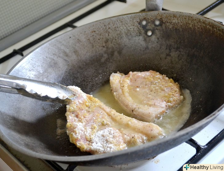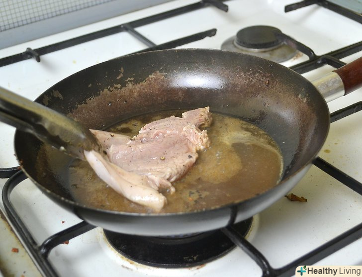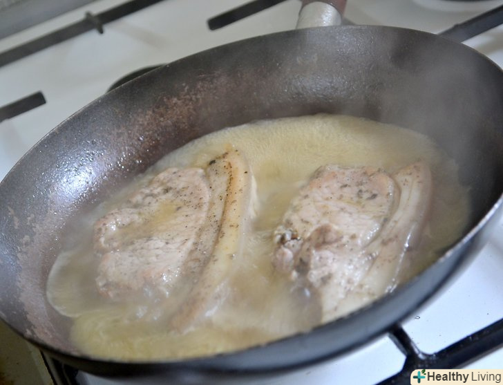 Обсмажуйте до готовності.зменшіть вогонь до середнього, накрийте сковороду кришкою і готуйте відбивні ще 5-10 хвилин.- Щоб визначити, чи дійсно свинячі відбивні можна безпечно вживати в їжу, проткніть центр найтовстішої свинячої відбивної термометром для м'яса. Внутрішня температура відбивної повинна бути не менше 63 градусів за Цельсієм, щоб її можна було безпечно вживати в їжу.[2]