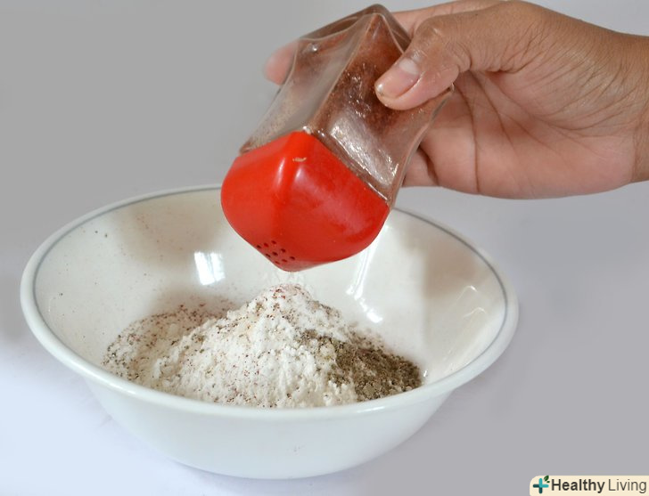 Змішайте борошно і приправи в неглибокій мисці.акуратно змішайте борошно, червоний перець, сіль, часниковий порошок і чорний перець до отримання однорідної маси.
