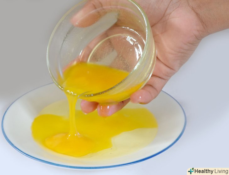 Збийте разом яйця і пахту.додайте яйце і пахту в неглибоку миску і збивайте від 30 до 60 секунд, поки не сформується однорідний колір.- Якщо в суміші все ще помітні темно-жовті смуги яєчного жовтка, продовжуйте збивати. Яйце і пахта повинні бути змішані якомога ретельніше.