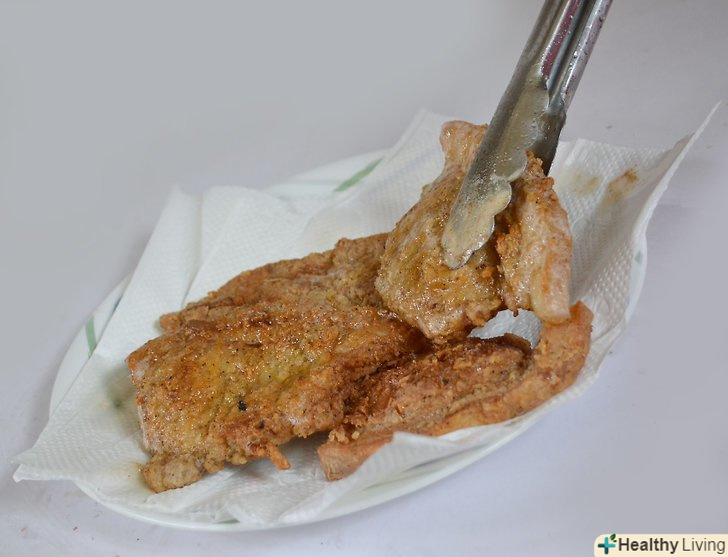 Позбавтеся від надлишків жиру і подавайте в гарячому вигляді.перекладіть свинячі відбивні на кілька шарів паперових рушників або чистих коричневих паперових пакетів. Залиште відбивні на 3-5 хвилин, а потім подавайте на стіл.