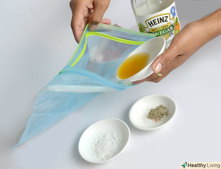 Змішайте інгредієнти для маринаду.у великому поліетиленовому пакеті змішайте яблучний оцет, масло, сіль і перець.- Якщо вас турбує, що рідина з пакета може витекти, як тільки додасте свинину, покладіть його на велику тарілку або в невелику форму для запікання.