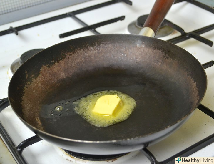 Нагрійте в сковороді олію.додайте в сковороду вершкове або оливкове масло і поставте на плиту на середній вогонь, поки вершкове масло не розтане або не нагріється і не покриє все дно сковороди.