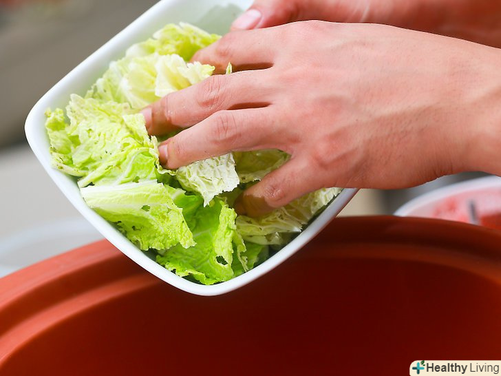 - Капусту необхідно розрізати на 6 або більше часточок. Розріжте качан навпіл і видаліть качан так, щоб не пошкодити листя. Розріжте кожну половину на 3 або 4 часточки. Промийте під холодною водою, якщо це необхідно.