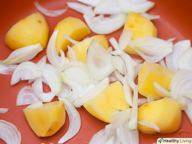Помістіть цибулю і картоплю на дно каструлі повільного приготування.Покладіть ці більш тверді овочі на дно рівномірним шаром.- Швидше за все, цибуля не прилипне до каструлі так, як це може статися з іншими овочами. Крім того, аромат цибулі може просочити інші, менш щільні, овочі.